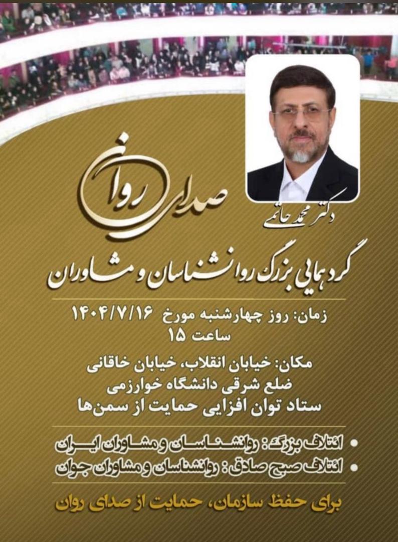 گردهمایی بزرگ ائتلاف «صدای روان» روز چهارشنبه ۱۶ مهر ۱۴۰۴ برگزار میشود.
