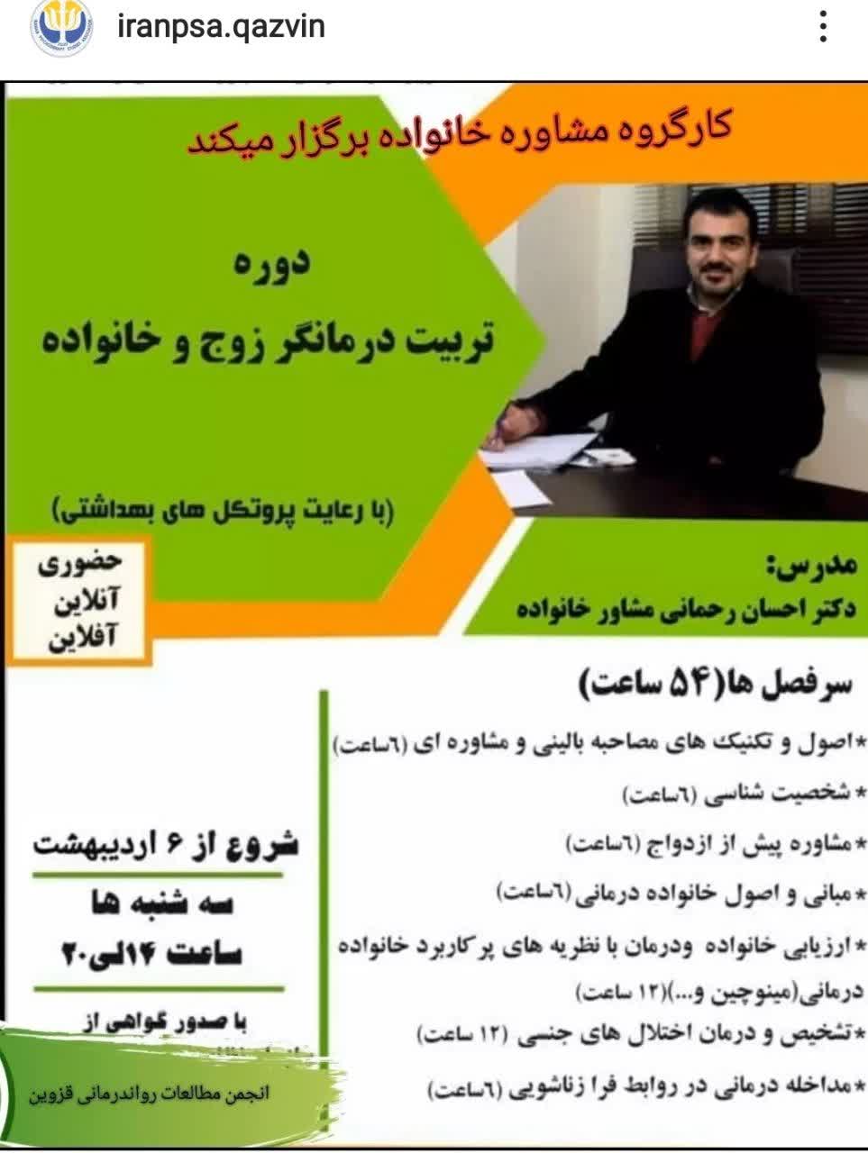 8 – برگزاری دو دوره تربیت درمانگر زوج و خانواده با حضور ۴۰ نفر (۵۴ساعته)، بهار و تابستان ۱۴۰۱